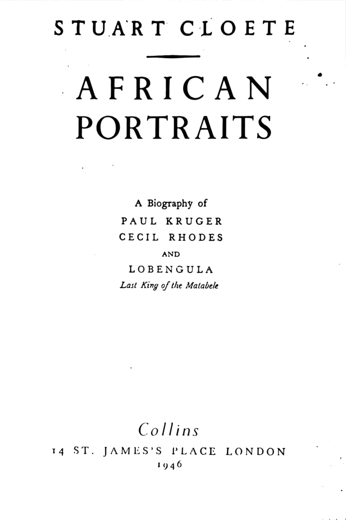 African Portraits – A Biography of Paul Kruger, Cecil Rhodes and Lobengula Last King of the Matabele