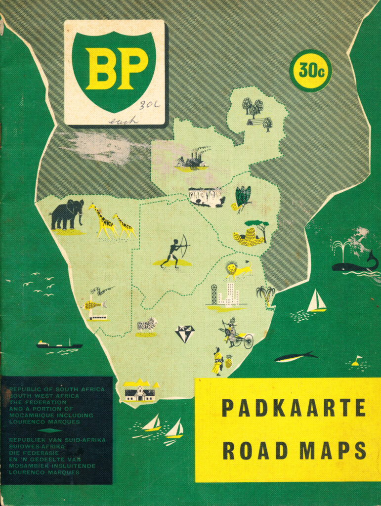 Republic of South Africa South West Africa The Federation and a portion of Mocambique including Laurenco Marques Printed by Gavin & Sales (Pty.) Ltd., Cape Town Pusher British Petroleum Publishing date 1955 Category Travel Language English Afrikaans