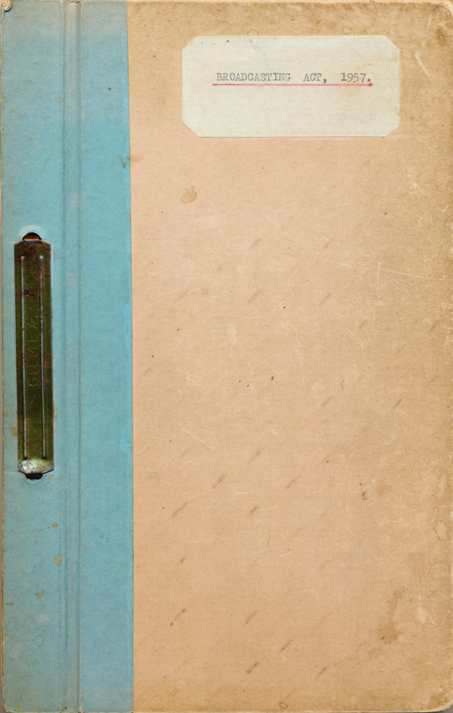 Ephemera Publication date 1957 Amended 1963 Publisher Rhodesia Government Category Media Language English Tags:1950195719601963broadcasting actEphemeraFederationGovernmentLegislationMediaRadioRhodesiaS. RhodesiaTelevisionTelevison