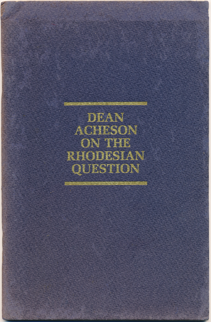Author Dean Acheson Distributed by the Rhodesian Information Office 2852 McGill Terrace, N.W. Washington, D....