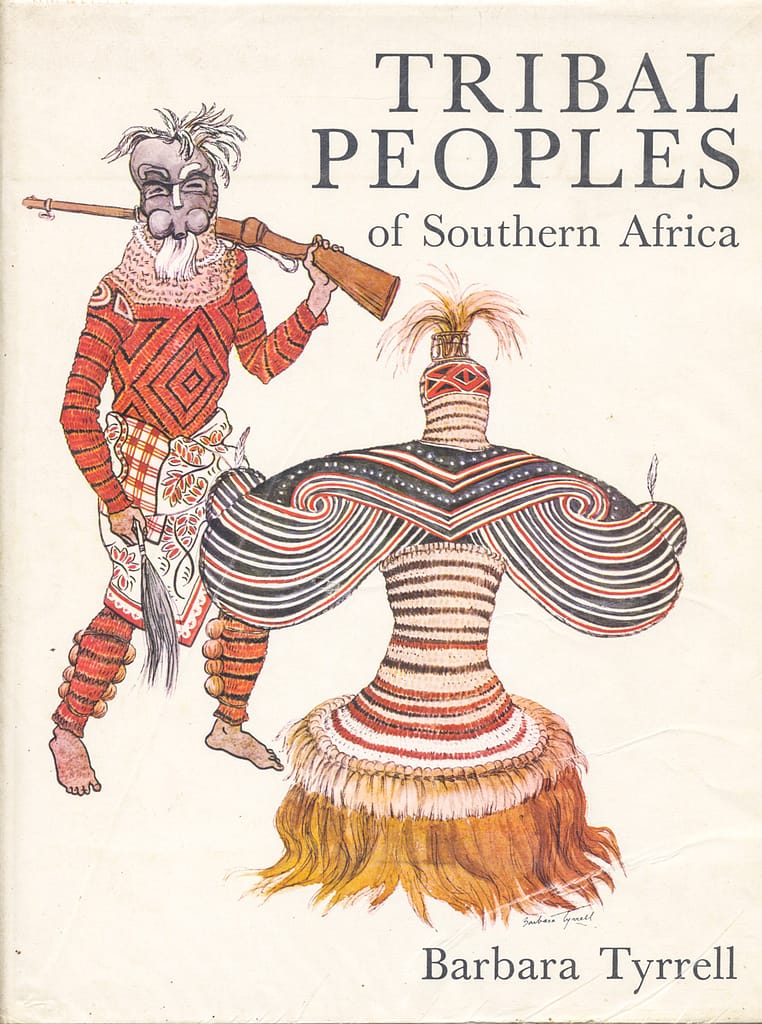 No more beautiful a book has ever been published than Barbara Tyrrell Tribal Peoples of Southern Africa. With its 96 colour plates. 76 line drawings and 256 pages of text it is a masterwork that occupied its author for seventeen years and involved thousands of miles of travelling. As a reward for her unique work. Barbara Tyrrell was honoured by the University of Natal with a degree of Doctorof Philosophy. The migrations. traditions. Customs and, above all, the strange and intricately patterned costumes of the tribal peoples of Southern Africa, are dealt with in such detail that this book will always rank as the standard work on the subject: an authority for scholars, a delight for collectors, and a revelation to all those who will find the text a fascinating account of ways of life completely different from anything to be seen anywhere else on earth Published by BOOKS OF AFRICA (Pty.) Ltd., 1005 Cape of Good Hope Savings Bank Building. St George’s Street. Cape Town